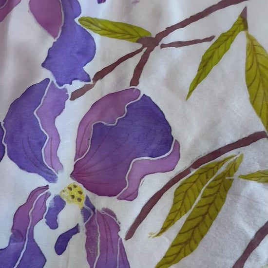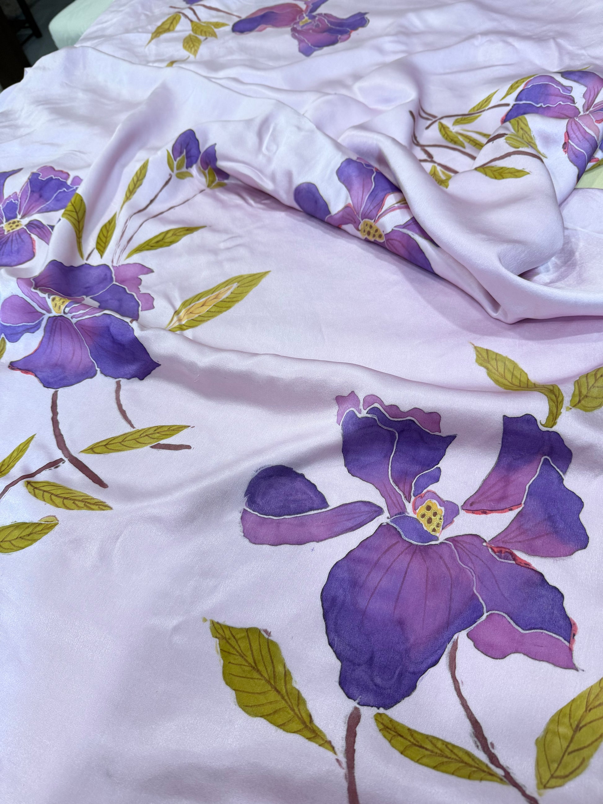 Violet Iris Bloom on Satin Silk