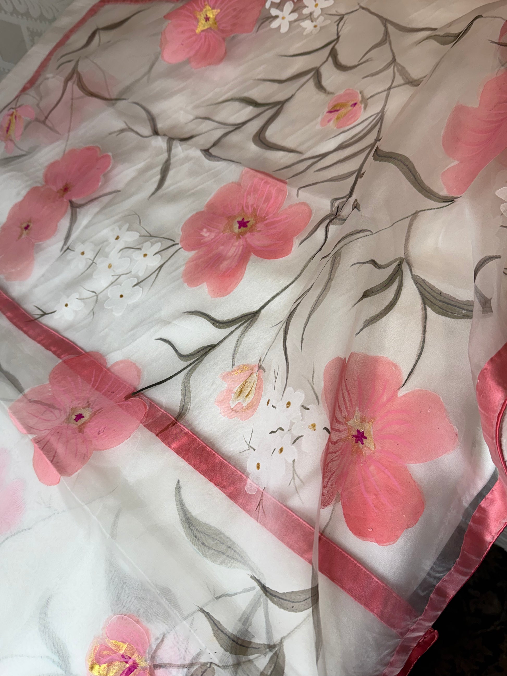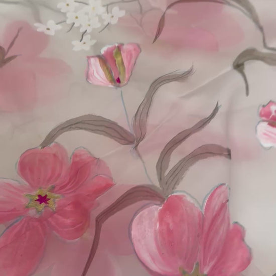 Bloom & Sheer — Handpainted Floral White Organza Dupatta