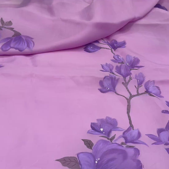 Purple Magnolia Dream — Handpainted Mauve Organza Silk Saree